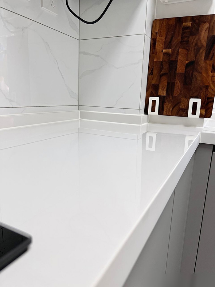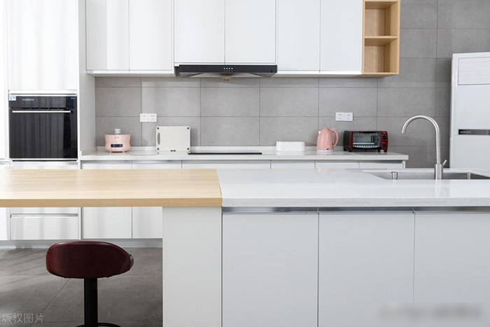 但是在选择厨房台面的材质的时候,还是有一定的技巧的,在选择的时候,可以选择经过技术烤制的石英台面,这种台面不仅防火,而且还很硬,而且还是一体成型的,没有缝隙,所以清洁起来也比较方便。